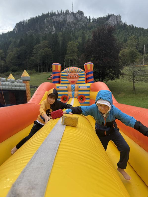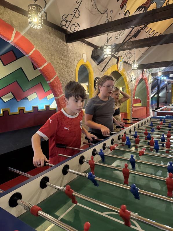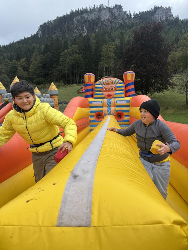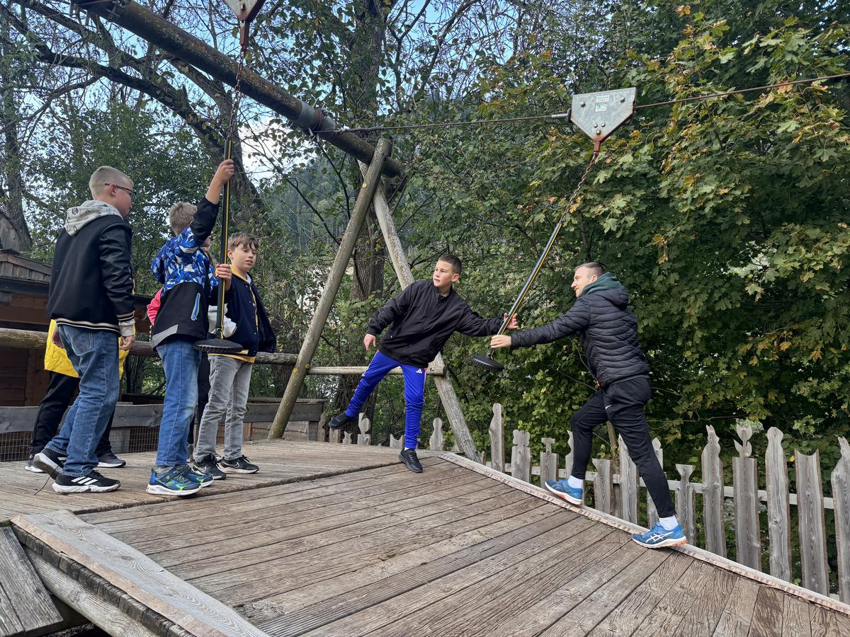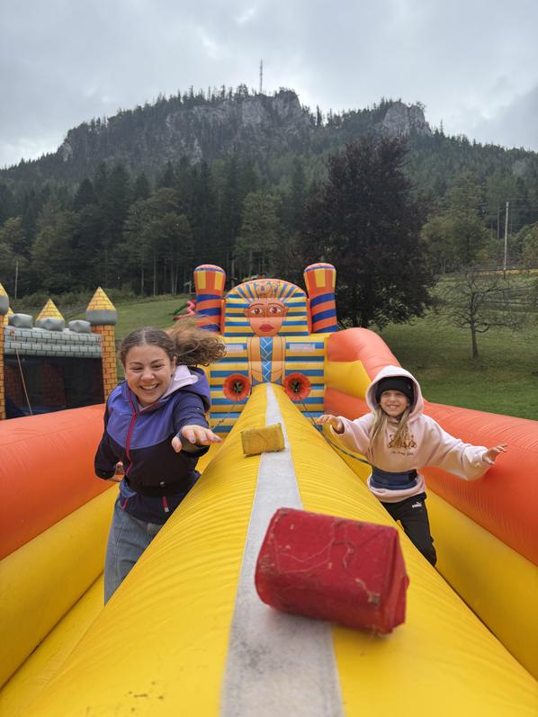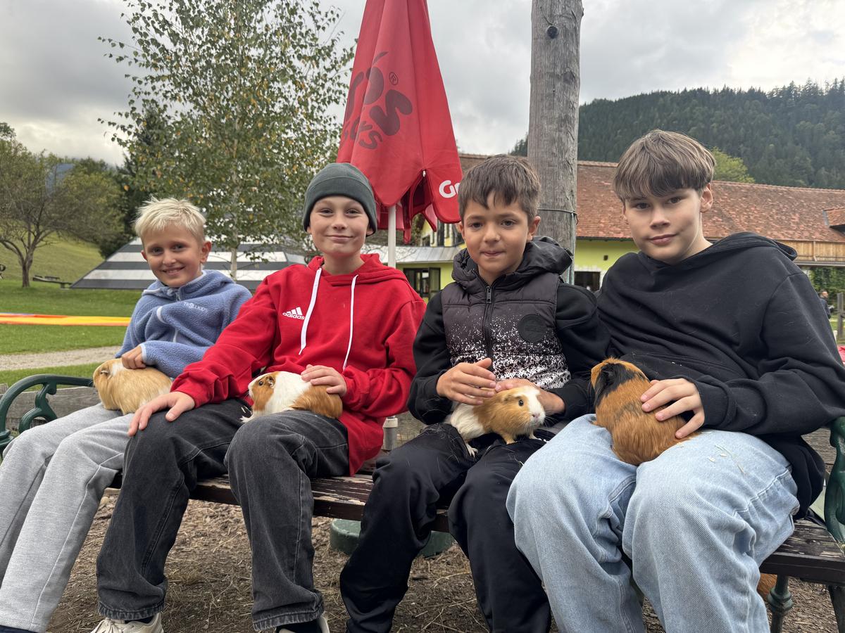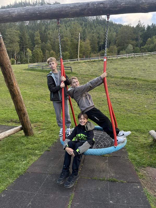 Von 30.9. bis 03.10.2025 fuhren Schülerinnen und Schüler aus den 1. Klassen mit den Lehrern Herrn Vodesek, Herrn Schein, Frau Schweiger, Herrn Poje und Frau Hojas nach Mürzsteg zum Appelhof. Obwohl das Wetter drei Tage verrückt spielte und uns alles andere als blauer Himmel erwartete, waren die vergangenen Tage spitze! Wir unternahmen unterschiedliche Aktivitäten, besuchten den Streichelzoo, verbrachten die Zeit im Indoorspielplatz, waren im Hallenbad oder aber auch beim Trampolinspringen. Am letzten Abend stand der Discobesuch an, welcher diese lustigen Tage voll und ganz abrundete. Wir feierten einige Stunden und genossen die Zeit gemeinsam, denn durch diese vergangenen Kennenlerntage bildeten sich unzählige neue Freundschaften. |