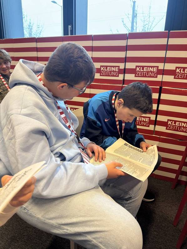 Die AHS-Gruppen der 3. Klassen fuhren im Rahmen des Deutschunterrichts zur Kleinen Zeitung nach Graz. Dort angekommen konnten die Jugendlichen ihr theoretisch angeeignetes Wissen in die Praxis umsetzen. Sie erfuhren, warum denn die Kleine Zeitung eigentlich Kleine Zeitung heißt, seit wann es diese gibt, wie viel sie damals kostete bzw. auch inwiefern die Zeitung sich auch im Laufe der Jahrzehnte verändert hat. |