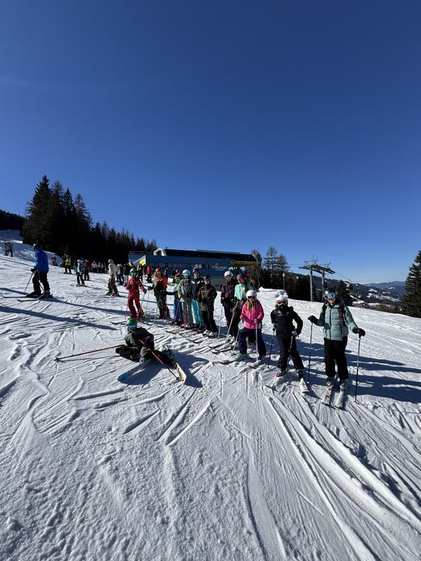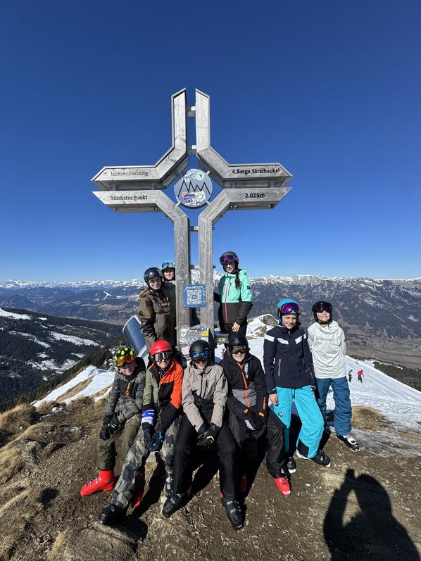 Am 5. März 2026 fand der Antenne Schulskitag auf der Planai in Schladming statt. Unsere Schule nahm an diesem Event mit insgesamt 50 Kids teil. Begleitet wurden sie von vier Lehrpersonen der Schule (Herrn Wimplinger, Herrn Poje, Frau Gottwald und Frau Hojas). Schon um 7 Uhr fuhren wir alle gemeinsam in Bruck an der Mur los und trafen gegen 9 Uhr bei der 4-Berge-Skischaukel ein. Die Sonne strahlte den ganzen Tag und auch das Thermometer kletterte im Laufe des Skitages auf rund 13 Grad Celsius. Uns alle erwartete somit ein atemberaubendes Panorama und wir konnten unser Können bei feinsten Wetterbedingungen unter Beweis stellen. Zur Stärkung trafen wir alle bei der Kessleralm ein. Hier gab es Getränke- sowie Essensgutscheine, jede Menge Spaß und musikalische Unterhaltung. Wir möchten uns im Namen der Schule bei Antenne Steiermark für den gut organisierten und actionreichen Tag bedanken! |