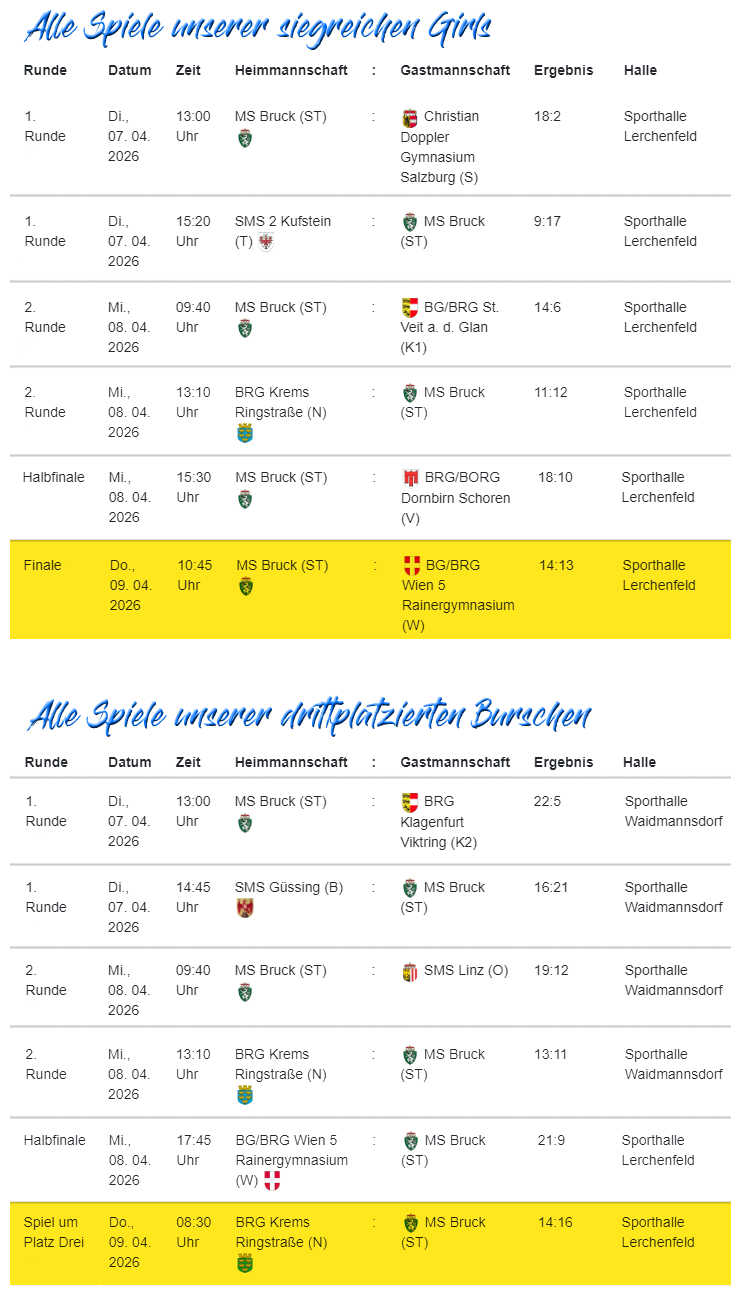 Gold und Bronze bei der österreichischen Meisterschaft im Handball (9./10. April 2026) |